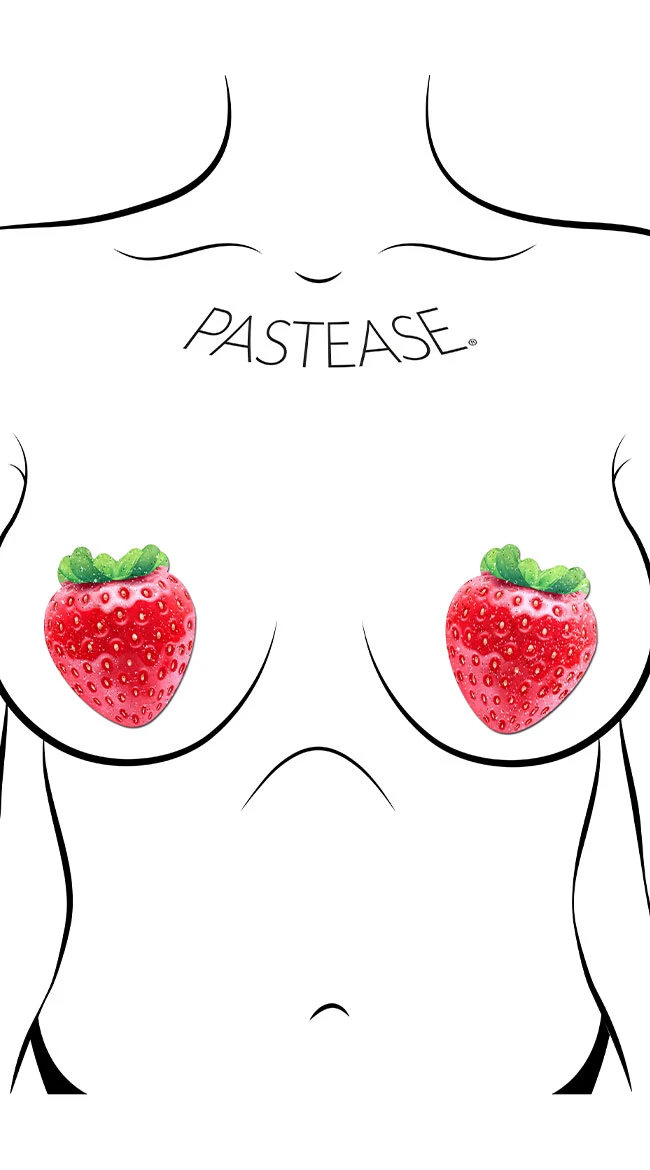 Want a taste? Sweeten up your look with these juicy strawberry pasties featuring a waterproof adhesive that leaves no residue when gently removed.